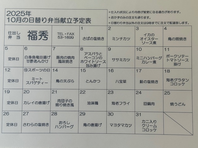 福秀の各種弁当